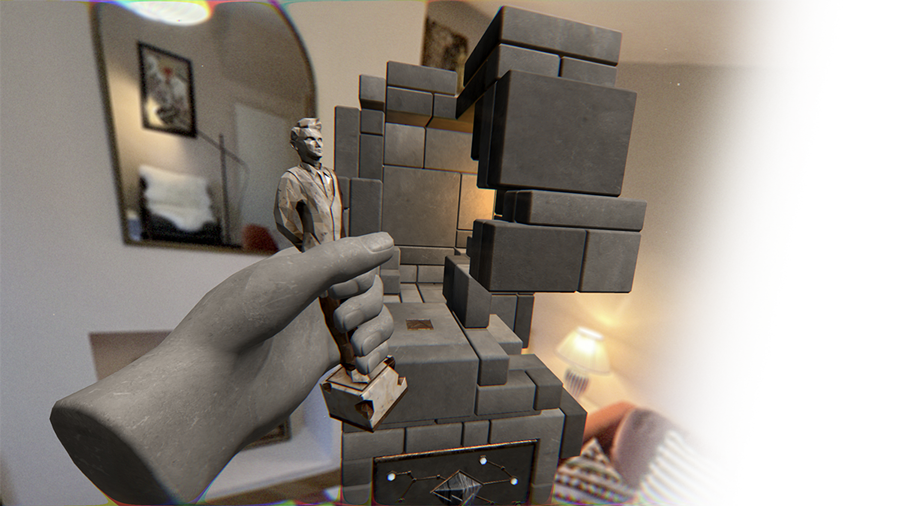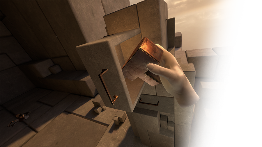 Use intuitive hand tracking to manipulate 3D geometric puzzles, build keys, and interact with the game world.